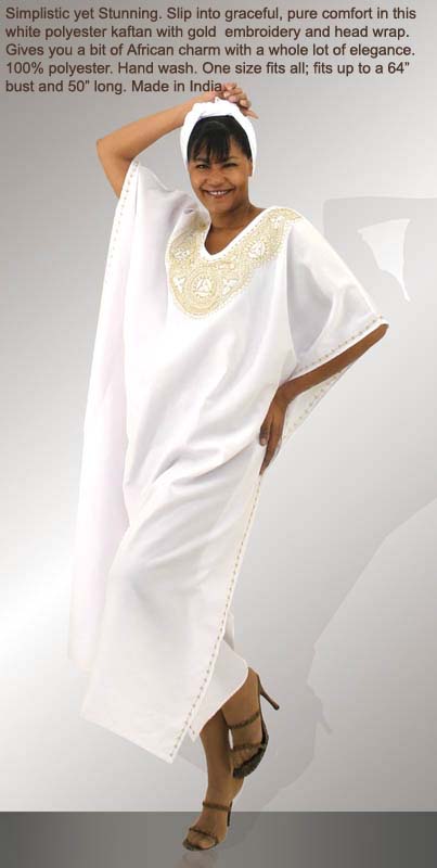 White with Gold Embroidery Kaftan $29.90