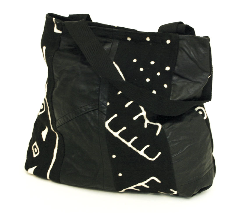 Black Mudcloth & Leatherette Design Handbag $57.90